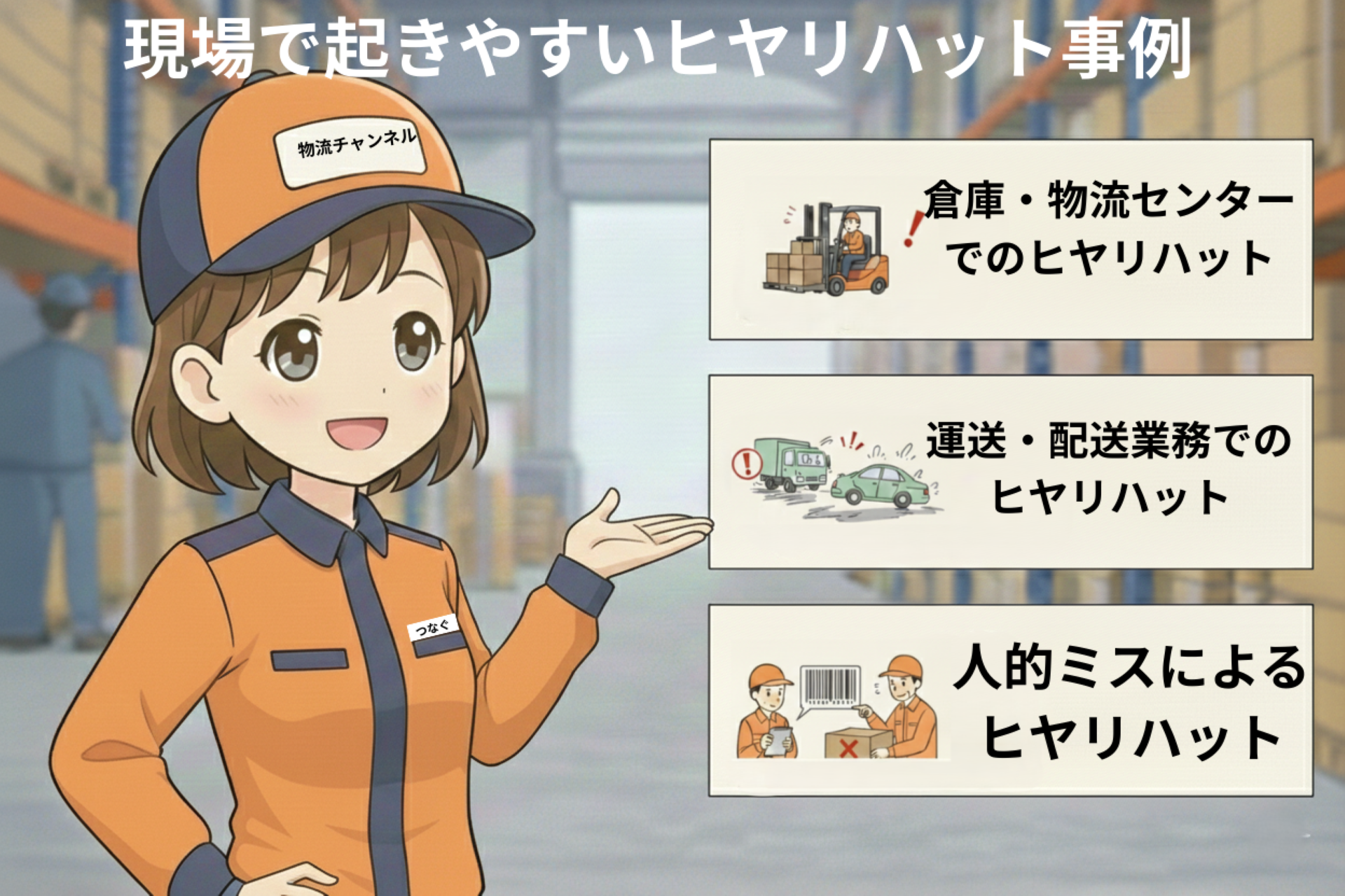 ヒヤリハットは現場ごとに形は異なりますが、物流・倉庫・運送の現場では共通したパターンが多く見られます。代表的な事例を知ることで、自社のリスクを具体的にイメージできます。