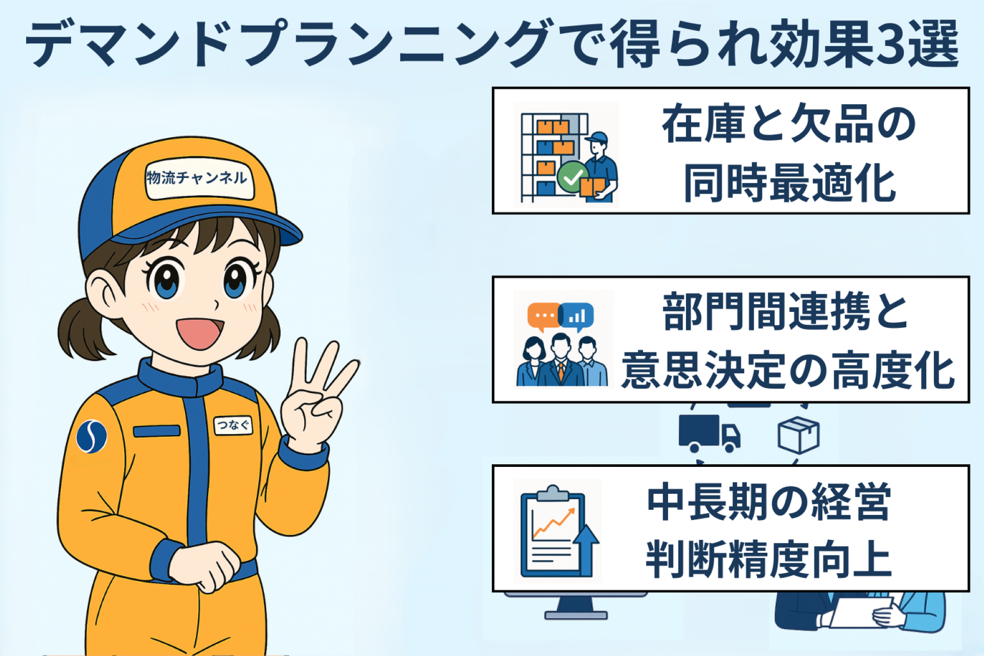 デマンドプランニングは、在庫削減や欠品防止だけでなく、物流・SCM全体の競争力を高める取り組みです。