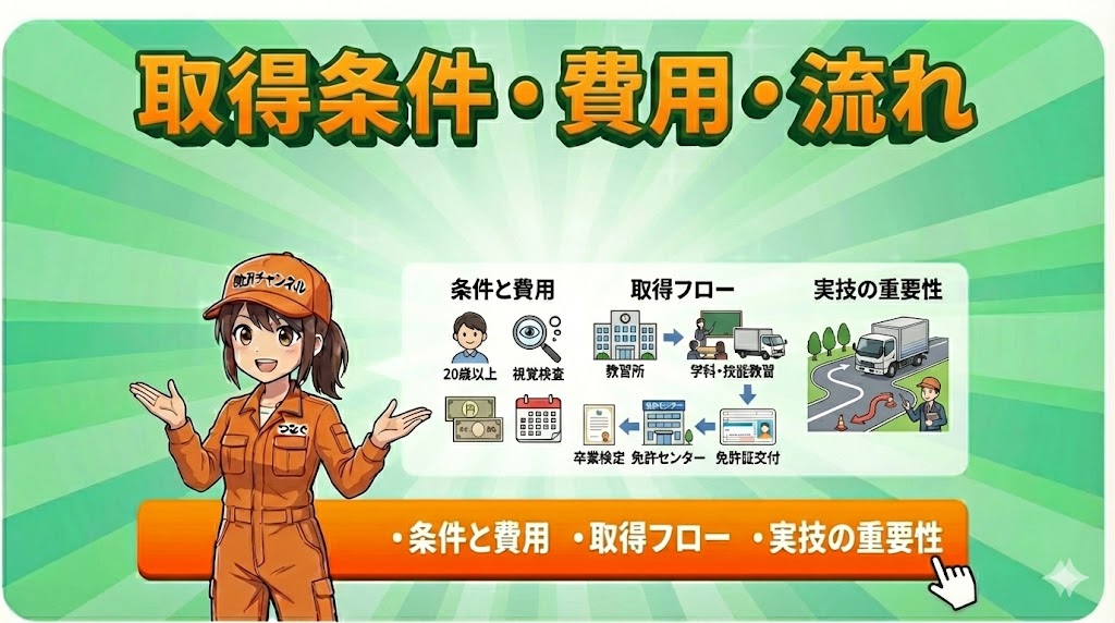 ポイント1.条件と費用|準中型・中型・大型で年齢と経験要件が異なる